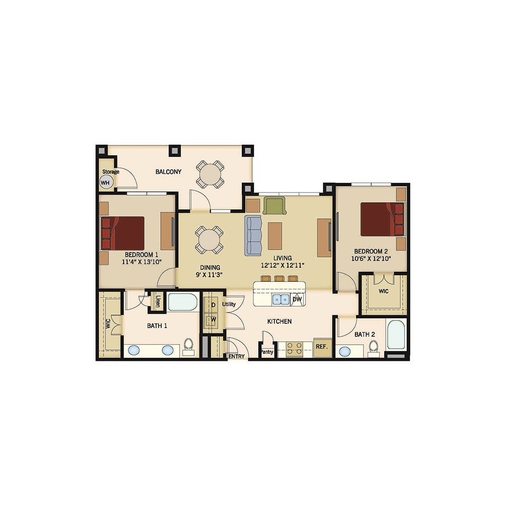2 Bed | 2 Bath | 1131 SQ. FT.