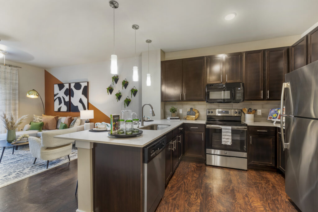 Wake up to impeccable interiors and stunning views. Surrounded in nineteen acres of greenery, Bell Southpark adds a taste of carefree bliss to your everyday life. You’ll feel like you’re on vacation with an unmatched selection of luxury amenities from a massive resort-style pool and sundeck to a spectacular outdoor kitchen and gathering space. Challenge your limits and train in our elite fitness center, yoga studio, or octagon. Set aside some time to play on our sand volleyball court, bark park, or gaming room. This is next-level luxury living. Make the most of every moment of Bell Southpark.